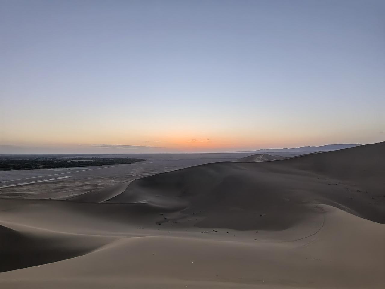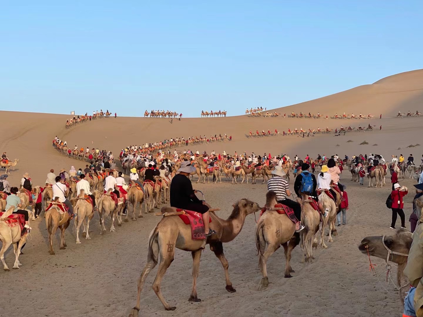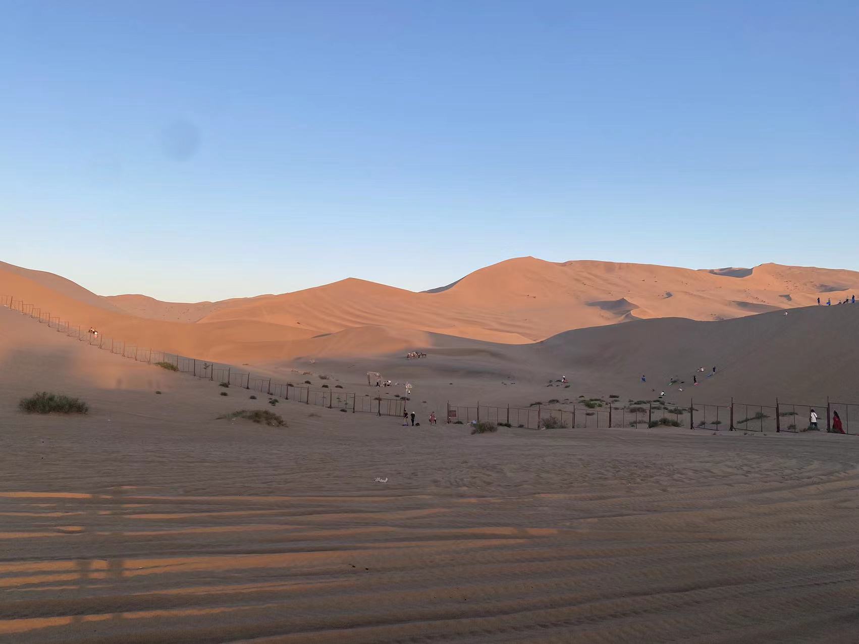 大(dà)漠天黑(hēi)比較遲,大(dà)概九點才天黑(hēi),所以晚飯結束,我們前往久負盛₩♣♦名的(de)鳴沙山(shān)。