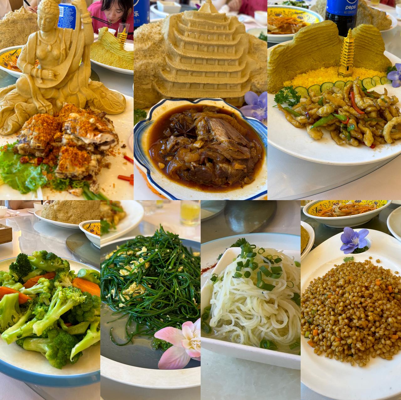 一(yī)上(shàng)午的(de)奔波,大(dà)夥已饑腸辘辘,對(duì)于“敦γ<λΩ煌第一(yī)餐”,也(yě)是(shì)滿滿期待,來(lái)到(d•≥£₩ào)當地(dì)一(yī)家(jiā)還(hái)不(α∏bù)錯(cuò)的(de)飯店(diàn)。在此不(bùδ™₽)得(de)不(bù)感歎中華文(wén)化(huà)的(de)博大(dà'★'÷)精深,菜肴的(de)實力強不(bù)強先不(bù)提,名号一(yī)定要(yào)夠響。創意十足×≤∏≈的(de)菜名讓我們無法從(cóng)字面意思窺測食材的(de)原料,有(y♦•↓÷ǒu)一(yī)些(xiē)用(yòng)肉眼看(kàn)也(yě)不(bù)得(de)其法,所以 ™ 整個(gè)過程非常有(yǒu)趣,大(dà)家(jiā)一(yī)邊猜,一(yī)邊吃(chī)εε的(de)不(bù)亦樂(yuè)乎。具體(tǐ)菜名雖已記不(bù)住了≤ε(le),但(dàn)其創意在印象裡(lǐ)大(dà)抵是(shì)趙麗(l®↓ì)蓉老(lǎo)師(shī)小(xiǎo)品裡(lǐ)₩₹★γ“宮廷玉液酒”的(de)程度。