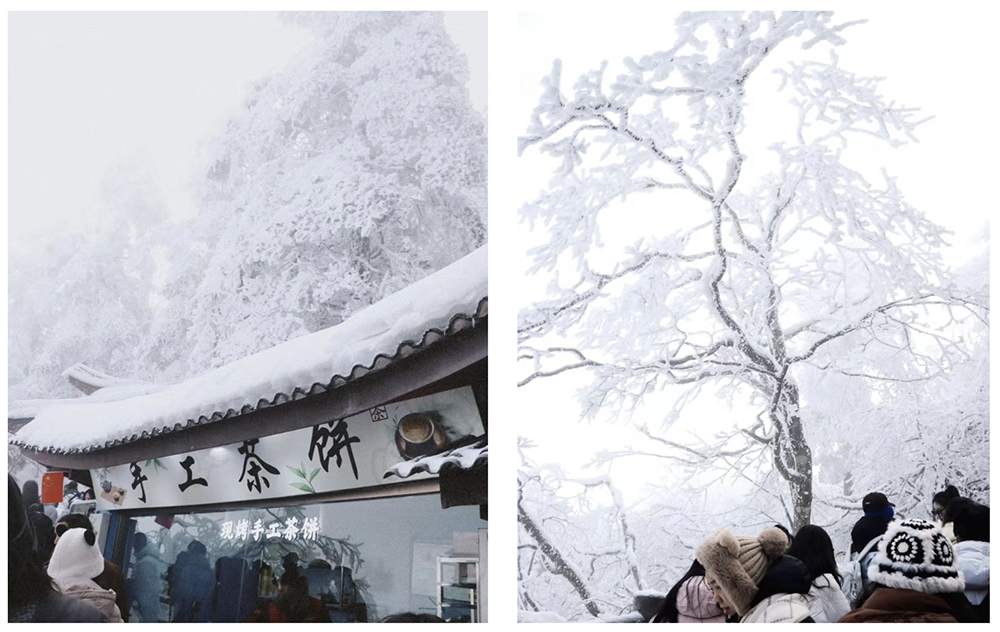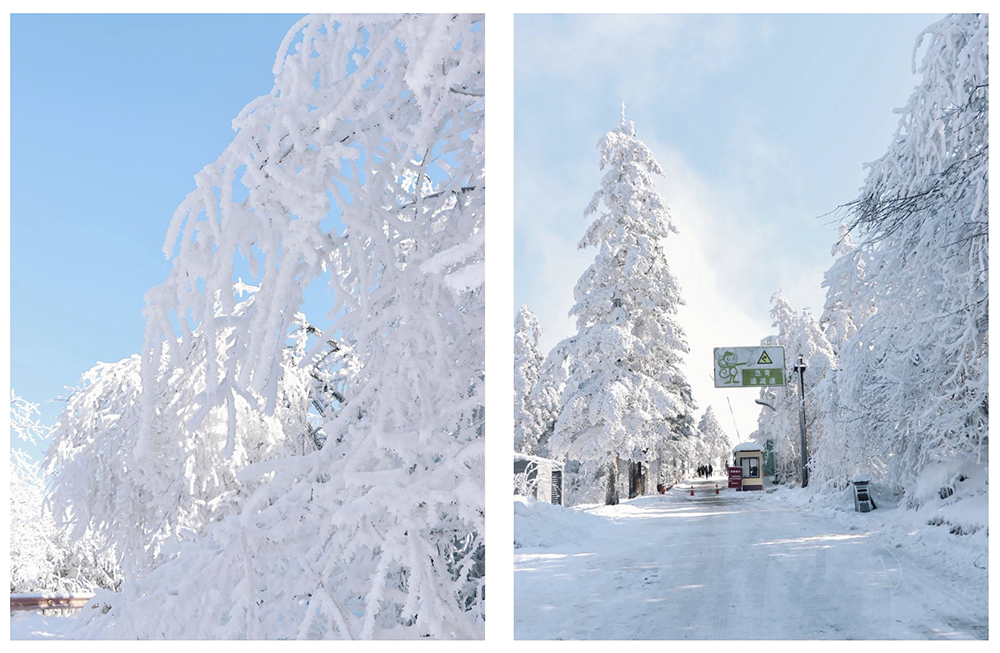 層巒疊嶂中,車(chē)旅緩緩上(shàng)行(xíng),窗(chuāng)外(wài±≥)枝桠上(shàng)的(de)雪(xuě)迹一(yī)點點吐露,直至茫茫成片。₽>¥許久,借助車(chē)力,我們終于抵達雷洞坪---海(hǎi)拔2430km的(d±¥♥e)位置。