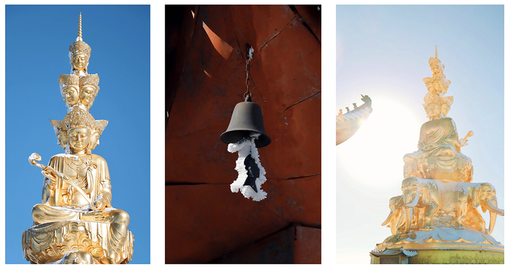 艱難拔擢5小(xiǎo)時(shí)後,我們終于踏上(shàng)了(l✘©☆↑e)峨眉之巅,望見(jiàn)了(le)最巍峨而虔誠 •的(de)高(gāo)山(shān)雪(xuě)。一(yī)步一(yī)上(shàng)梯,仰望金(jīn)頂菩薩身(shēn),在這(zhè)裡Ω•(lǐ),即使心無信仰,也(yě)沒有(yǒu)人(rén)心裡(lǐ)會(huì)空(kōng)±✘→ 蕩蕩。