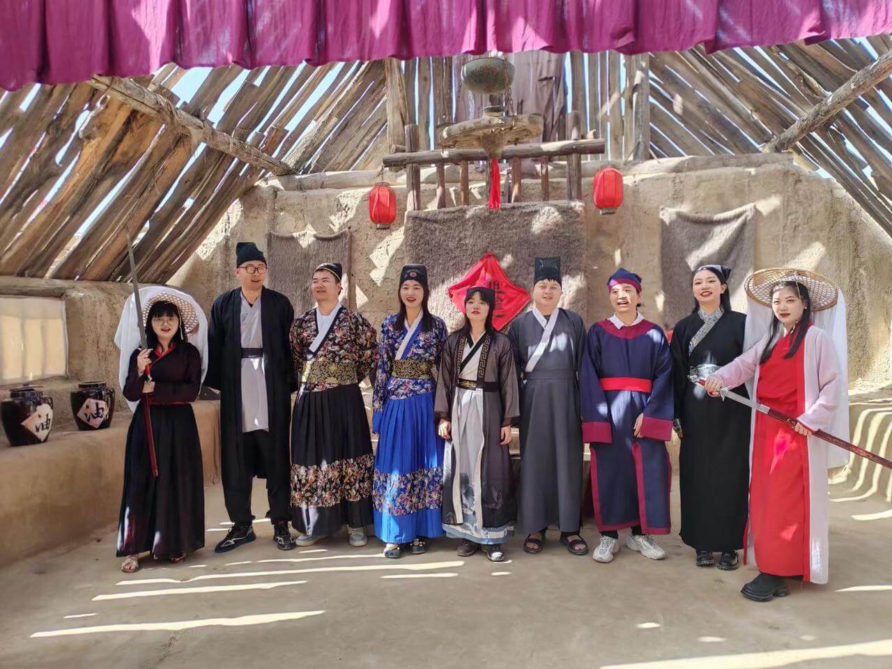 第四天的(de)行(xíng)程主要(yào)是(shì)體(tǐ)驗藝•✘術(shù)人(rén)文(wén)。一(yī)早走進《紅(hóng)高(gāo)粱》《 ©大(dà)話(huà)西(xī)遊》等知(zhī)名影(yǐng)視(shì)劇(jδλù)拍(pāi)攝地(dì)——鎮北(běi)堡西(xī)部影(yǐ♥×ng)城(chéng),開(kāi)啓微(wēi)短(duǎn≠$)劇(jù)體(tǐ)驗,做(zuò)一(yī)回“劇(jù)£φ§α中人(rén)”,大(dà)家(jiā)領好(hǎo)角色、換裝拍₩ $£(pāi)攝,入戲很(hěn)快(kuài),花(huā)絮樂(yuè)趣多(d→λ >uō)多(duō),成片或帶尴尬搞笑(xiào),但∏π(dàn)多(duō)體(tǐ)驗,總是(shì)好(hǎo)的(de)。
