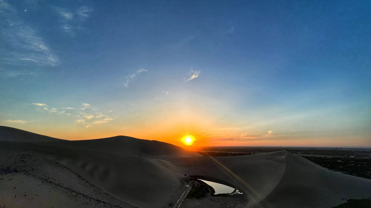 欲聽(tīng)一(yī)聽(tīng)風(fēng)吹沙響,見(jiàn)一(yī)見(ji£πàn)“月(yuè)牙泉”,賞一(yī)賞王維詩裡(lǐ)的(de)“大(dà)漠孤煙★₹♠¶(yān)直,長(cháng)河(hé)落日(rì)圓”。鳴沙山(shān)全部由細沙§"∏堆積而成,遠(yuǎn)遠(yuǎn)望去(qù),在£→♣≠太陽的(de)照(zhào)耀下(xià)熠熠生(shēng)輝↑•" 。據說(shuō),無論有(yǒu)多(duō)少(shǎo)人(rén)駐足沙漠,♥♦σ留下(xià)多(duō)少(shǎo)印記,經過當晚的(de)風(fēng)沙覆蓋,第二天π©÷€沙漠看(kàn)起來(lái)就(jiù)像從(cóng)未有(yǒu)人(rén)踏足過一≤γ∏¥(yī)般。但(dàn)看(kàn)似短(duǎn)暫易逝的(de)足迹,實則成就(jiù) ε永恒的(de)沙漠。此景此情,實在是(shì)令人(rén)≥>¥>心生(shēng)依戀。