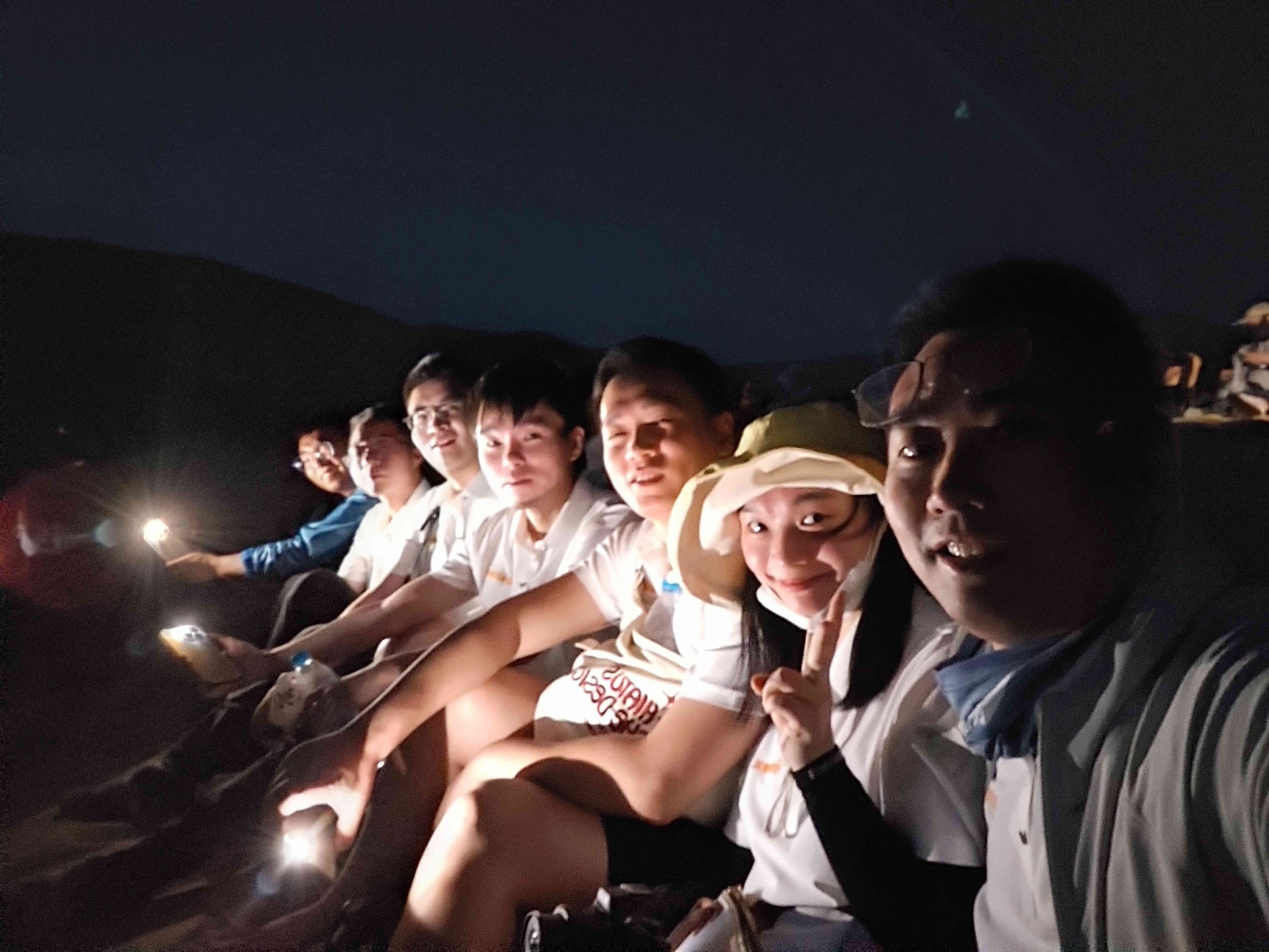 想要(yào)爬上(shàng)鳴沙山(shān)并不(bù)容易,看(kàn)似輕✔≥松,實則躬行(xíng)才知(zhī)其不(bù)易之處。綿綿細沙踩進去(✔♣≥qù),進一(yī)步,退半步,大(dà)夥對(duì)張骞等人(rén)穿越沙漠之艱辛有(yǒuπ'β)了(le)切身(shēn)的(de)體(tǐ)會(huì)。一(yī ×α)行(xíng)人(rén)中,體(tǐ)力好(hǎo)的(de)攙扶著(zhe)體(tǐ)力稍∑✔弱一(yī)點的(de);能(néng)幫忙分(fēn)擔重量的(de)小(xiǎo)夥伴不(bù↓§♥)是(shì)左手幾雙鞋,就(jiù)是(shì)右手σ≥★幾隻包;還(hái)有(yǒu)逆行(xíng)而來(lái)的(de)援助之手,大(dà)家(∏±♦jiā)的(de)團結和(hé)互助彙聚成“沙漠之光(guāng ₩ε)”。曆經半個(gè)多(duō)小(xiǎo)時(shí§∏₩),陸續登頂。開(kāi)闊的(de)視(shì)野讓眼≈φ<×前的(de)鳴沙山(shān)和(hé)落日(rì)更顯恢★¶φ弘,真是(shì)不(bù)虛此行(xíng)!