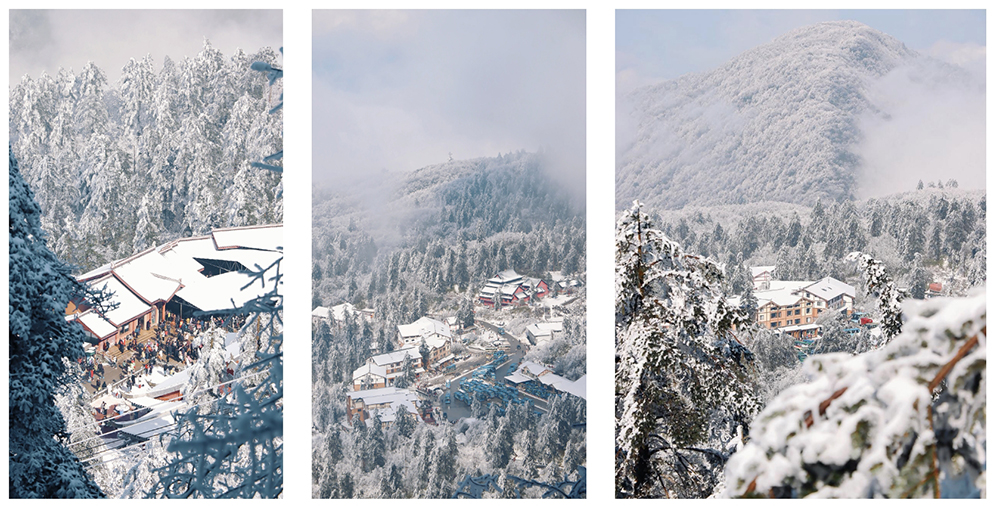 層巒疊嶂中,車(chē)旅緩緩上(shàng)行(xíng),窗(chuāng)外(wài±≥)枝桠上(shàng)的(de)雪(xuě)迹一(yī)點點吐露,直至茫茫成片。₽>¥許久,借助車(chē)力,我們終于抵達雷洞坪---海(hǎi)拔2430km的(d±¥♥e)位置。