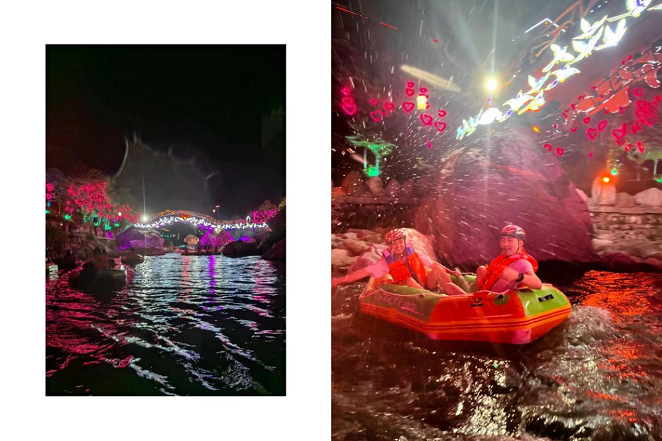 對(duì)于前一(yī)天漂流沒有(yǒu)盡興的(d₹↕e)小(xiǎo)夥伴們趁著(zhe)夜幕降臨的(de)時(shí)刻,在燈光(guāng)下Ωφ (xià)兩人(rén)一(yī)組登上(shàng)橡皮艇,晚上(shàng♠)漂流躲避開(kāi)了(le)烈日(rì),不(bù)僅涼快(kuài),♠↑ £還(hái)省去(qù)了(le)防曬,雖然看(kànΩ₩≈)不(bù)到(dào)山(shān)間(jiān)的(de)風(₽§♥fēng)景,燈光(guāng)下(xià)的(de)夜色更顯神秘。
