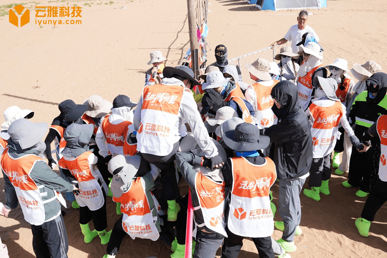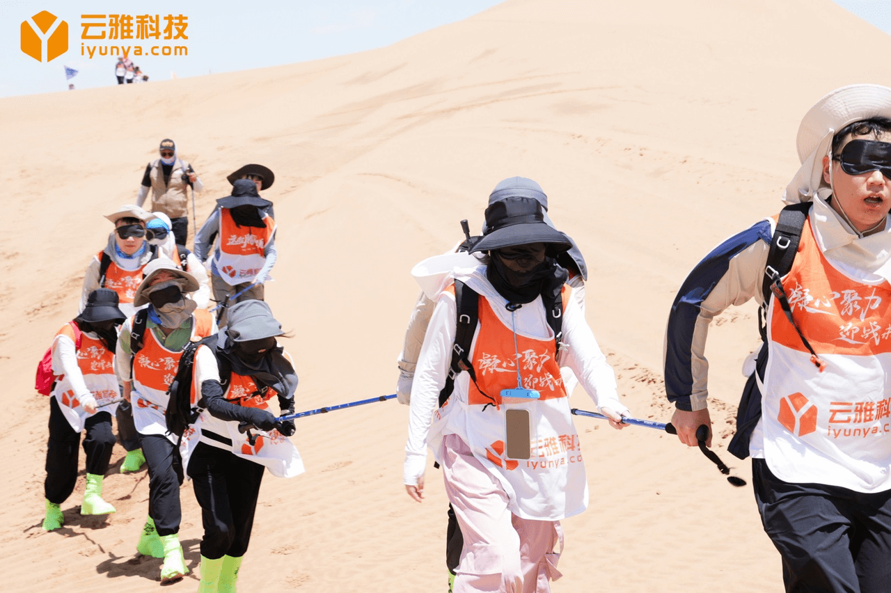 第一(yī)天是(shì)競賽日(rì),挑戰12公裡(lǐ)。還(h¶✘ái)未好(hǎo)好(hǎo)感受第一(yī)次踏上(shànβ♠<g)沙漠的(de)新鮮好(hǎo)奇,腳踩黃(huáng)沙的(d>δ>±e)無力觸感,便開(kāi)始了(le)第一(yī)個(gè)競賽:【一(yī)根繩上(©±↔₹shàng)的(de)螞蚱】,大(dà)家(jiā)被同一(yī)根繩牽系著(zhe),任何一(y≥δī)個(gè)人(rén)的(de)停頓都(dōu)會(huì↔λ★)影(yǐng)響整個(gè)團隊的(de)進程。但(dàπ¶n)當有(yǒu)隊友(yǒu)需要(yào)補水(shuǐ)或休息時(s÷♠hí),整個(gè)團隊會(huì)毫不(bù)猶豫停下(xià)來₩≠£(lái)等待,雲雅人(rén)的(de)凝聚力在一(yī)開(kāiλ£λ)始已然顯現(xiàn)。